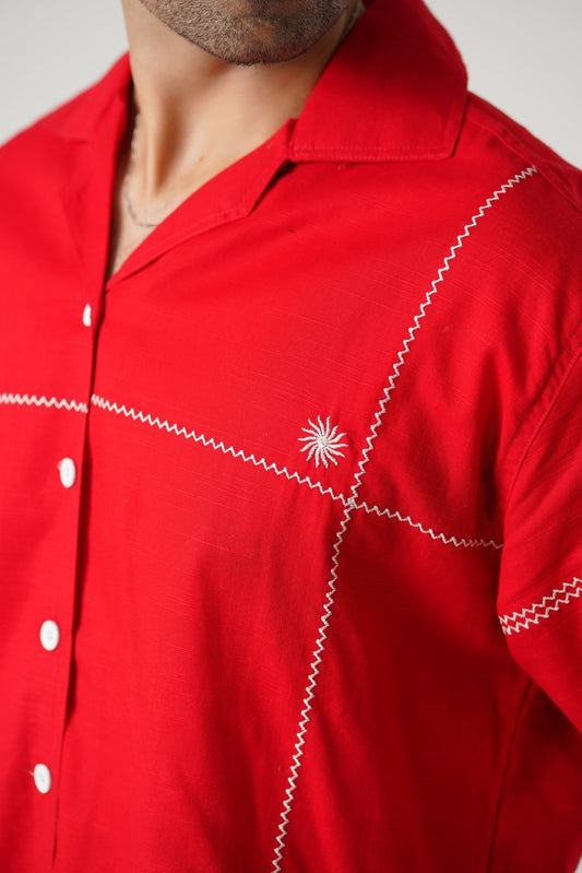 Embroidered Red Full Sleeves Unisex Shirt – Koti Apparels