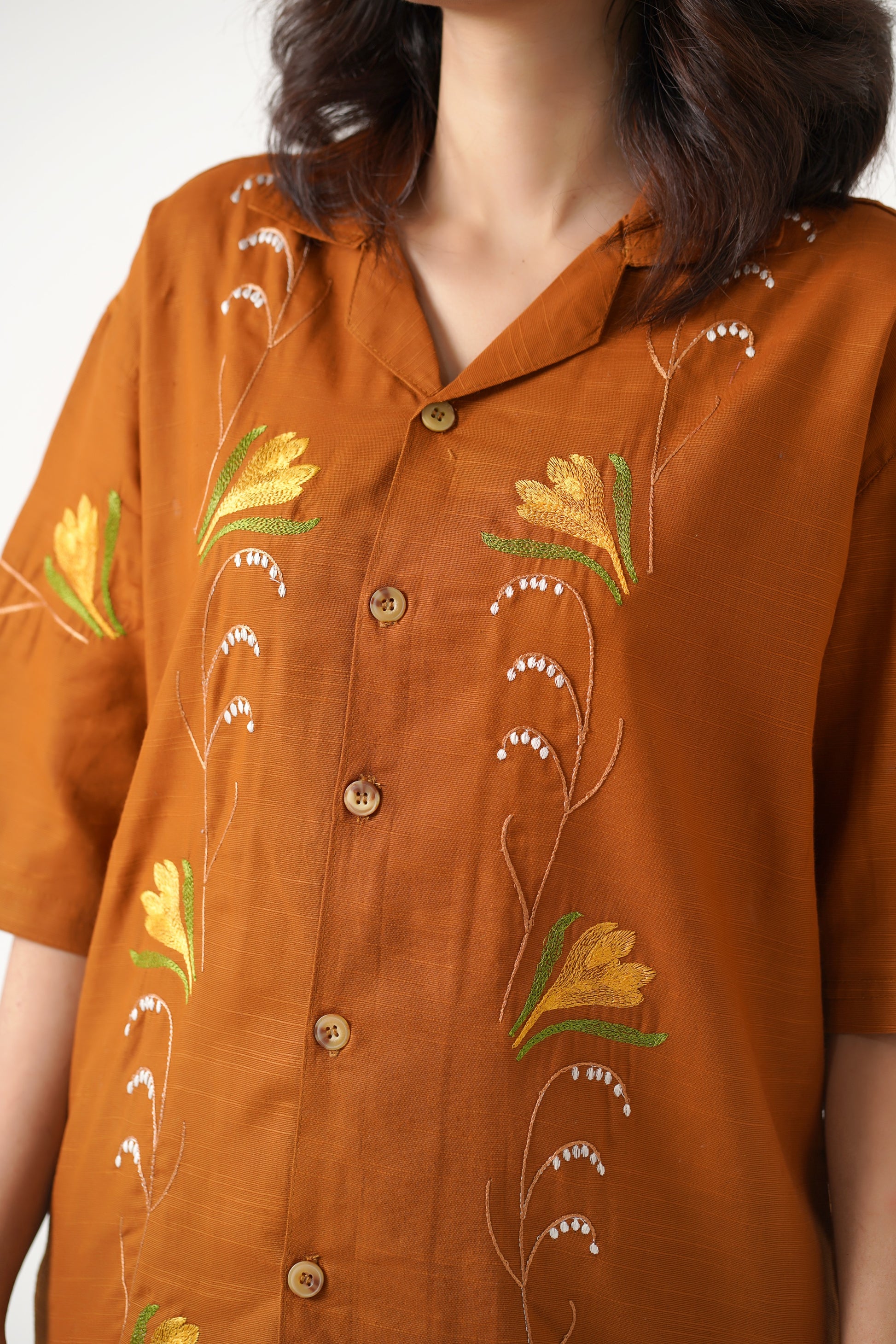 Burnt Orange Embroidered Unisex Shirt – Koti Apparels