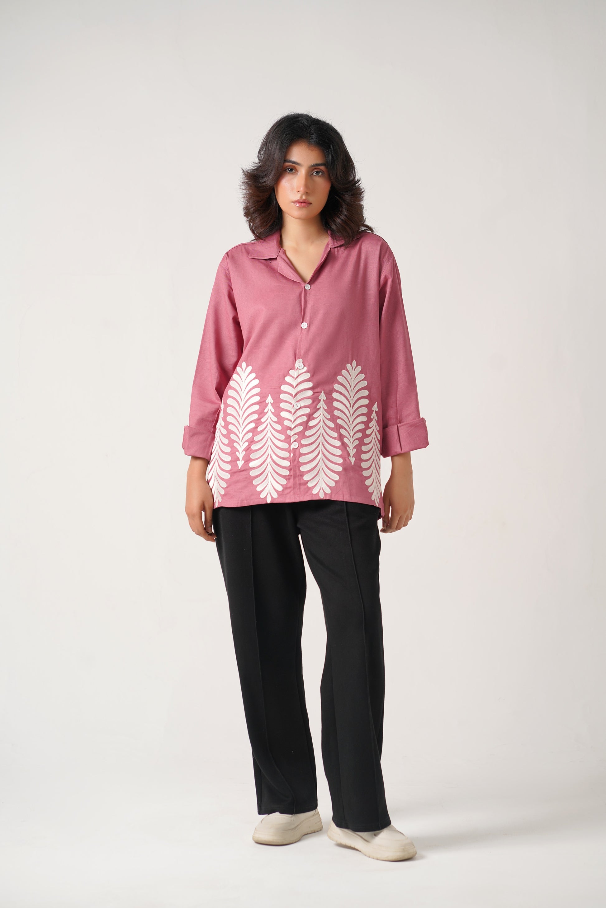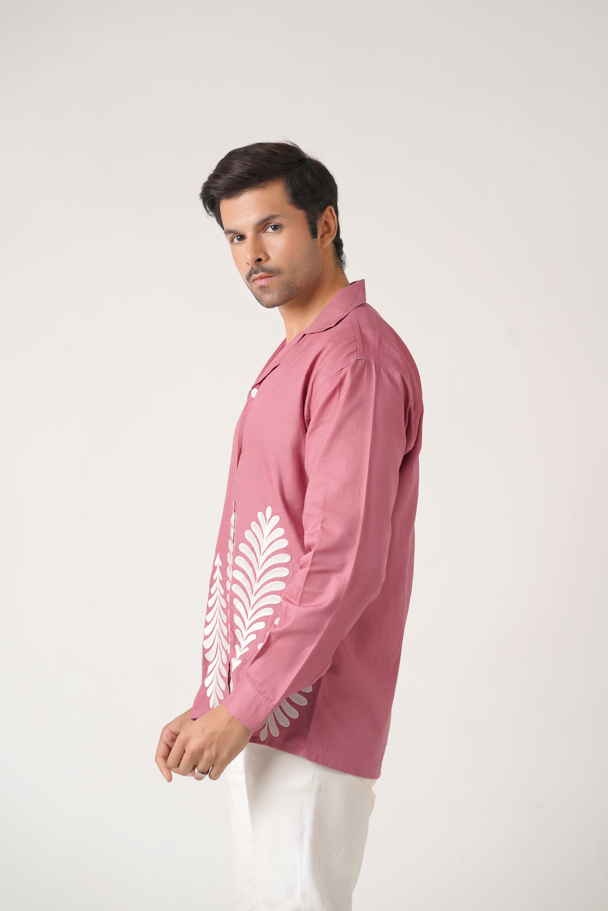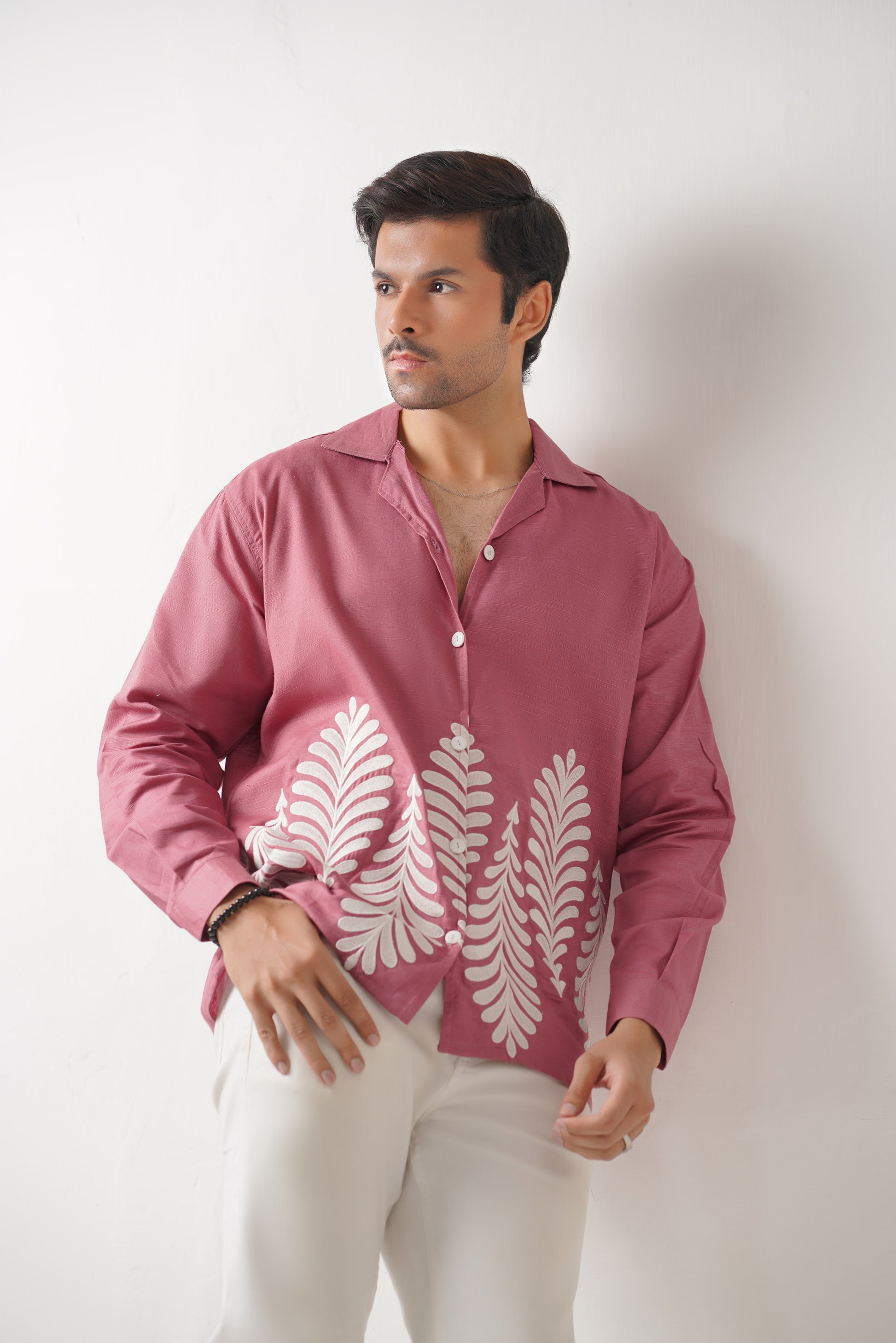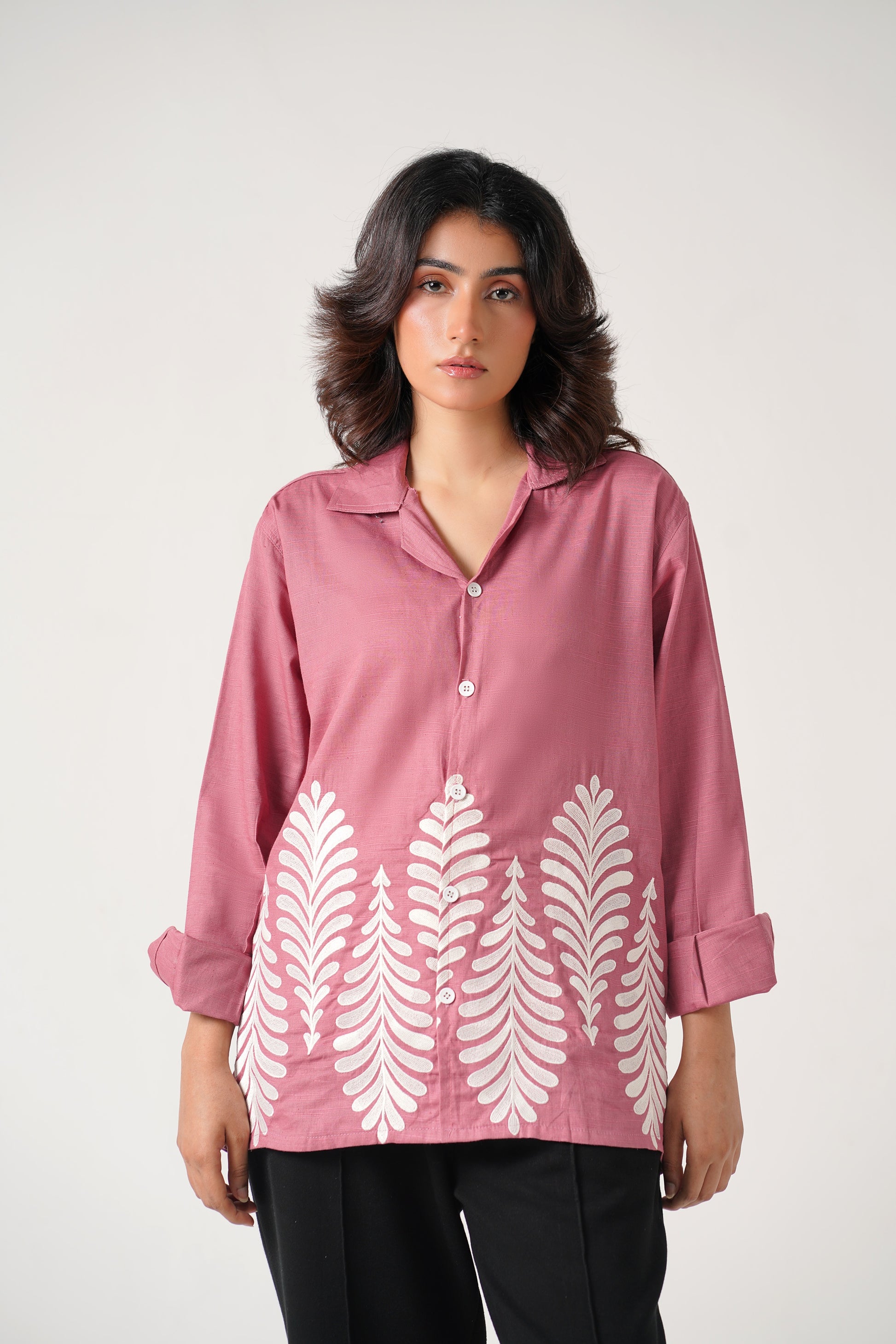 Embroidered Full Sleeves Rose Pink Unisex Shirt – Koti Apparels